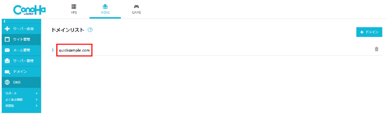 ※下記の画像例では取得した独自ドメインは「quicksample.com」になります。